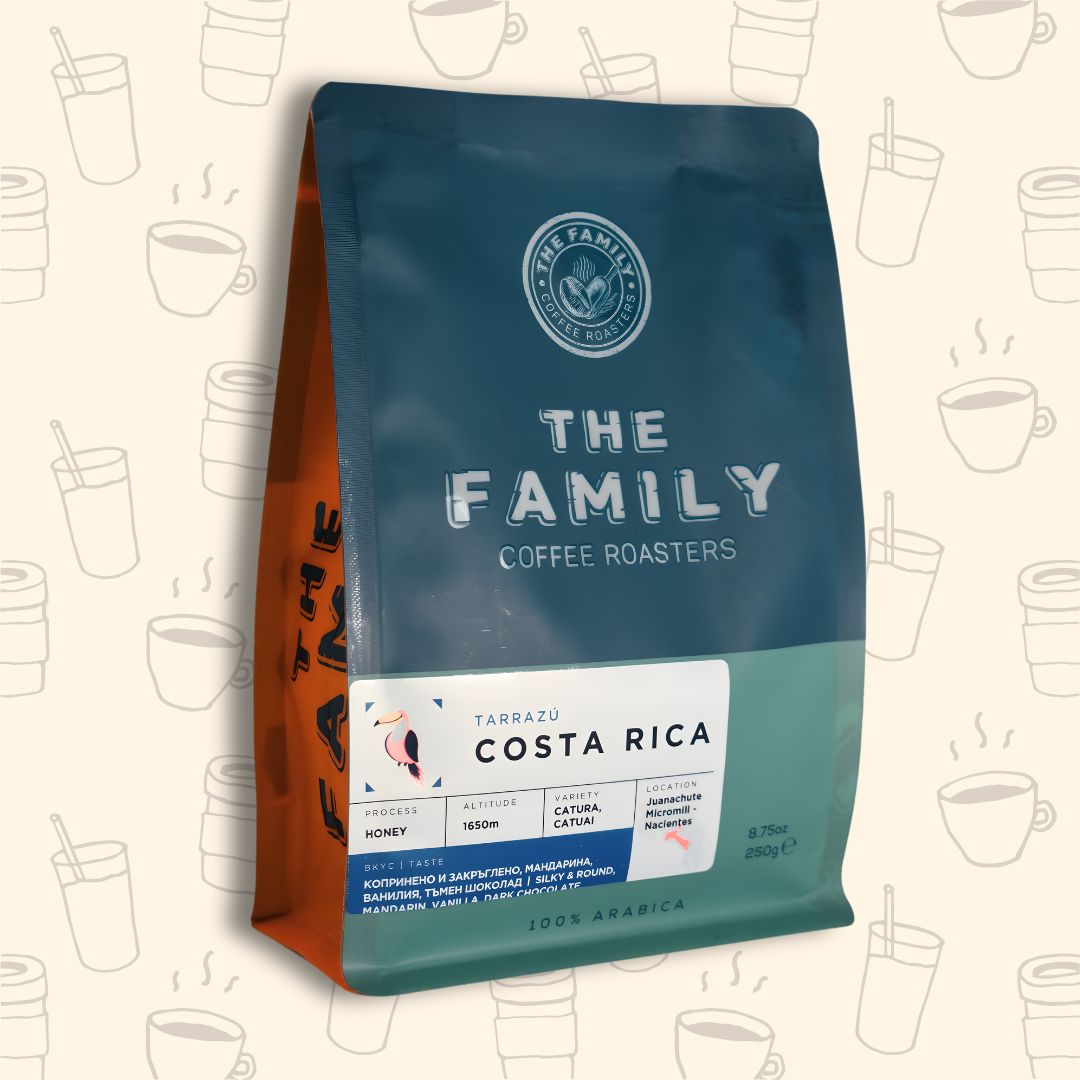 Прясно изпечено specialty кафе от Tarrazú, Коста Рика, отглеждано на 1650 м надморска височина. Обработено по honey процес в Juanachute Micromill – Nacientes, който придава копринена текстура и закръгленост на вкуса. Сортове Caturra и Catuai, известни със своята елегантност и баланс.